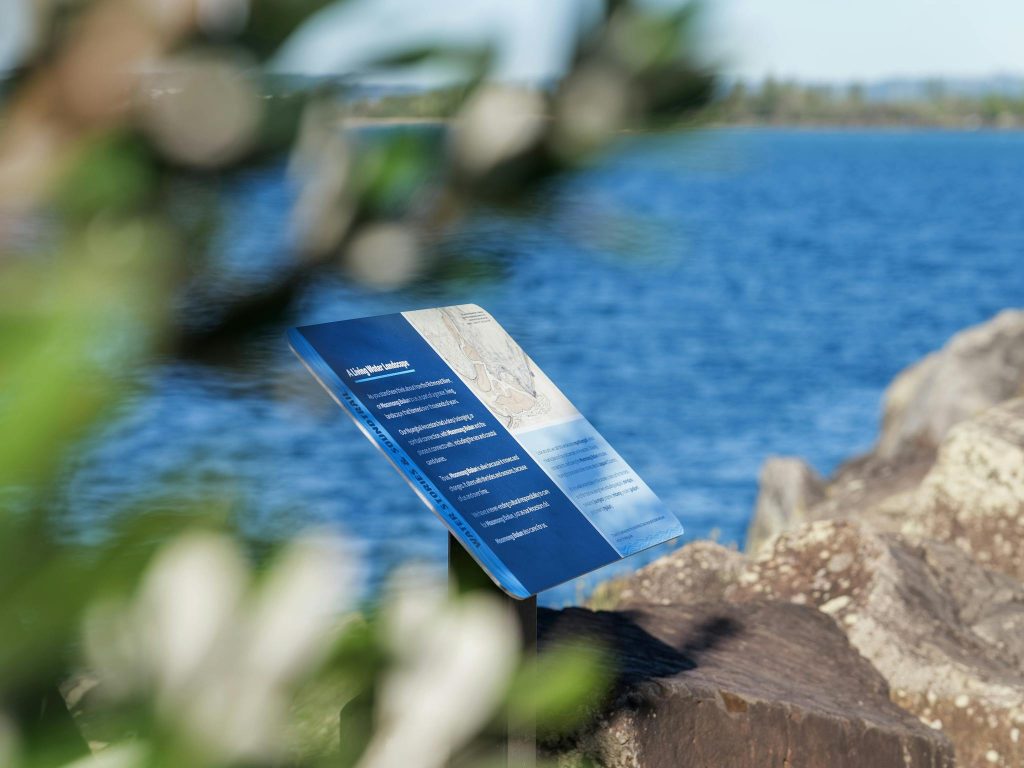 The full Water Stories walk stretches 4.5 kilometres along the riverfront, tracing the north break wall, curving around Shaws Bay and continuing into Fawcett Park. Along the route, 23 contemporary signs share the layered histories of Ballina’s relationship with water, from thousands of years of Nyangbal connection to Country through to the arrival of European settlers in the nineteenth century.