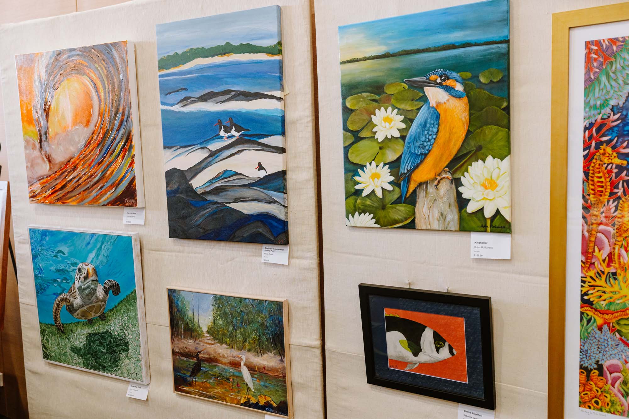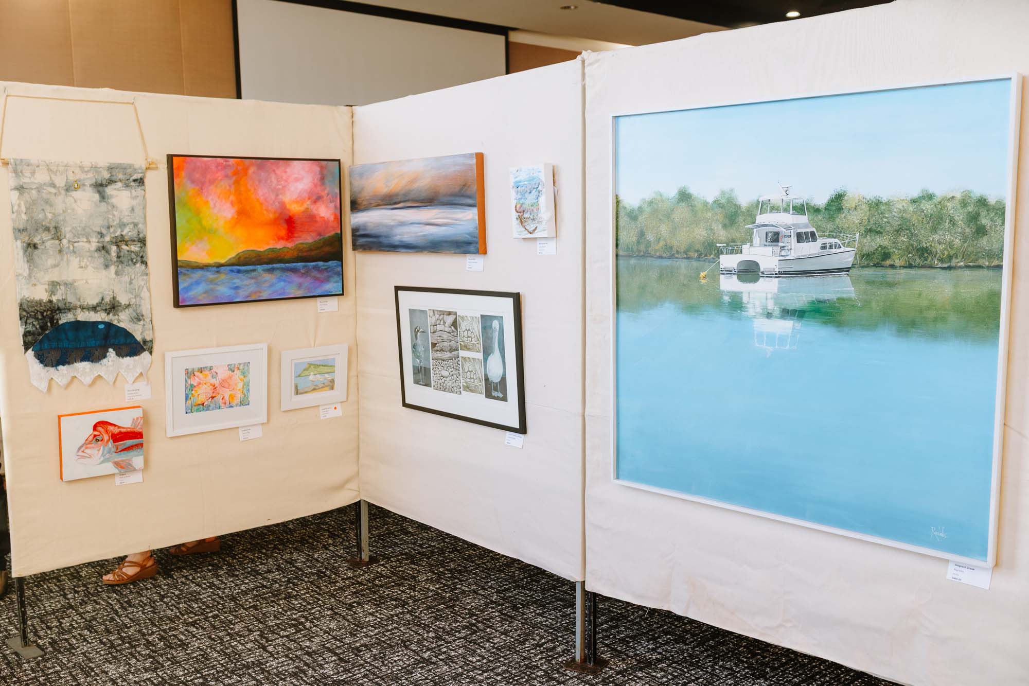 This year’s exhibition was led by renowned local artist Kim Toft, whose passion for the region’s waterways and marine life has long been reflected in her artwork. Kim’s vision and coordination were central to bringing the event to life, curating a collection that honoured both artistic talent and environmental connection.